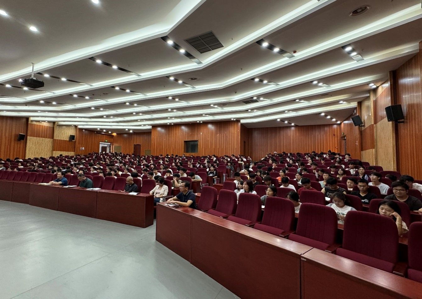 10月15日下午,在武鸣校区图书馆报告厅,公司党委副书记侯代忠给地理科学与规划公司、环境与生命科学公司、自然资源与测绘公司、数学与统计公司的新生代表及教工党支部党员上专题为“七十五载迎盛世 砥砺前行续华章”的思想政治理论课。地理科学与规划公司、环境与生命科学公司、自然资源与测绘公司、数学与统计公司的主要领导、教工党支部书记及2024级新生代表共400多人参加了本次思想政治理论课学习。此次讲座由马克思主义公司党委副书记黄志海主持。
