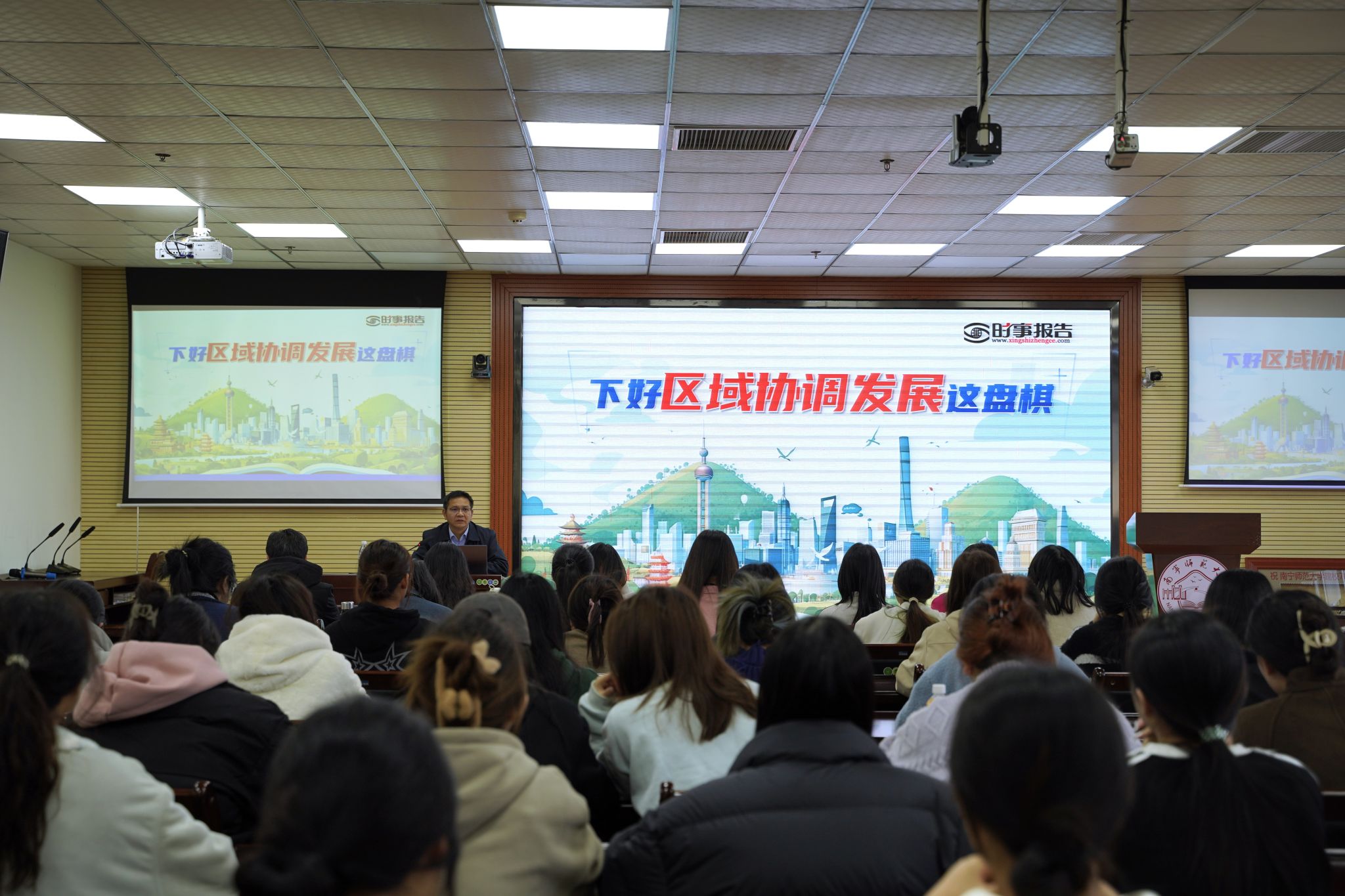 12月18日下午,公司党委副书记隆广庆在五合校区xc体育8B215学术报告厅给xc体育师生上专题为“下好区域协调发展这盘棋”的思想政治理论课。