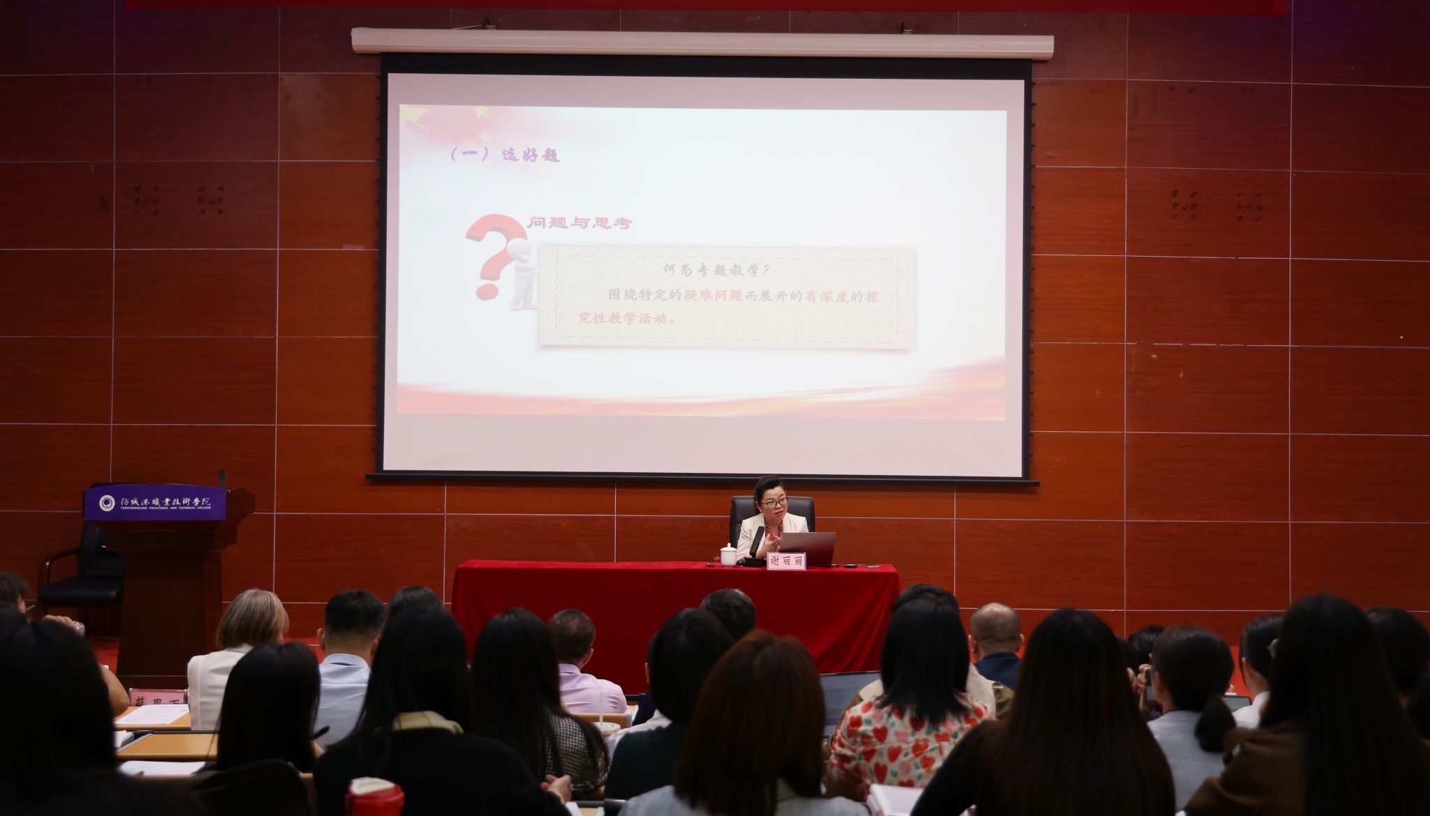 xc体育经理助理谢丽丽副教授为与会教师做了《关于思政课教学设计核心要素的思考》专题报告,从把握标准突出要求,研究要素精心设计,全情投入打造金课三个方面分析了思政课教学设计的核心要素,并结合实际案例,分享了创新思政课教学的有效路径。