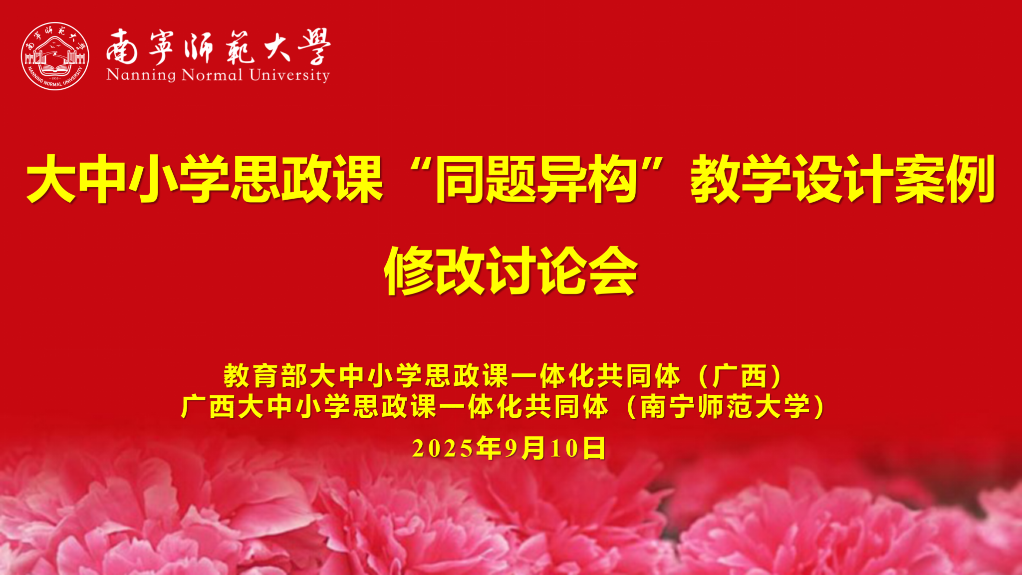 9月10日,教育部大中小学思政课一体化共同体(广西)召开大中小学思政课“同题异构”教学设计案例修改讨论会。教育部大中小学思政课一体化共同体(广西)各成员单位代表、大中小学思政课一体化“同题异构”教学展示团队各学段教师代表等参加会议。会议由xc体育经理曾令辉主持。