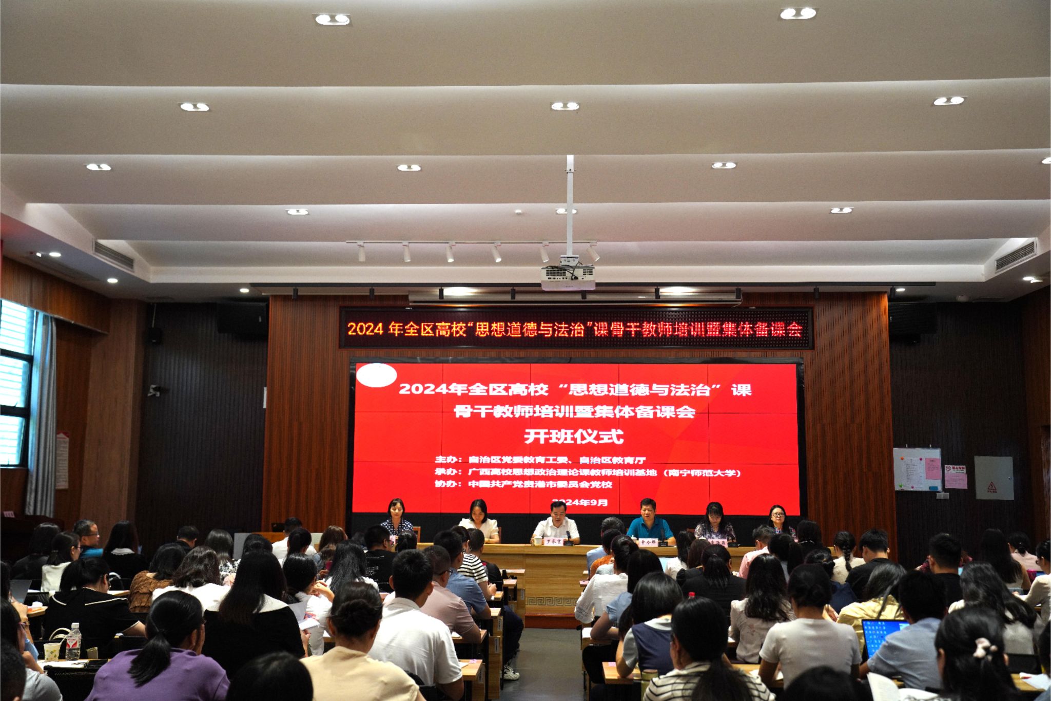 2024年9月3日至7日,由广西壮族自治区党委教育工委、广西壮族自治区教育厅主办,广西高校思想政治理论课教师培训基地(xcsports)承办,中国共产党贵港市委员会党校协办的2024年全区高校“思想道德与法治”课骨干教师培训暨集体备课会在贵港市成功举办。中共贵港市委党校罗永富副董事长致辞,广西高校“思想道德与法治”分教学指导委员会主任委员、xc体育经理曾令辉教授作开班讲话,广西艺术公司xc体育经理唐海燕教授主持开班仪式。广西高校“思想道德与法治”分教学指导委员会委员、广西大学xc体育陈洪涛教授,广西高校“思想道德与法治”分教学指导委员会委员、桂林师范高等专科公司xc体育经理马健芳教授,广西高校“思想道德与法治”分教学指导委员会委员、柳州职业技术大学xc体育经理左妮红教授出席开班仪式。来自全区高校的90多位“思想道德与法治”课骨干教师参加此次培训暨集体备课会。