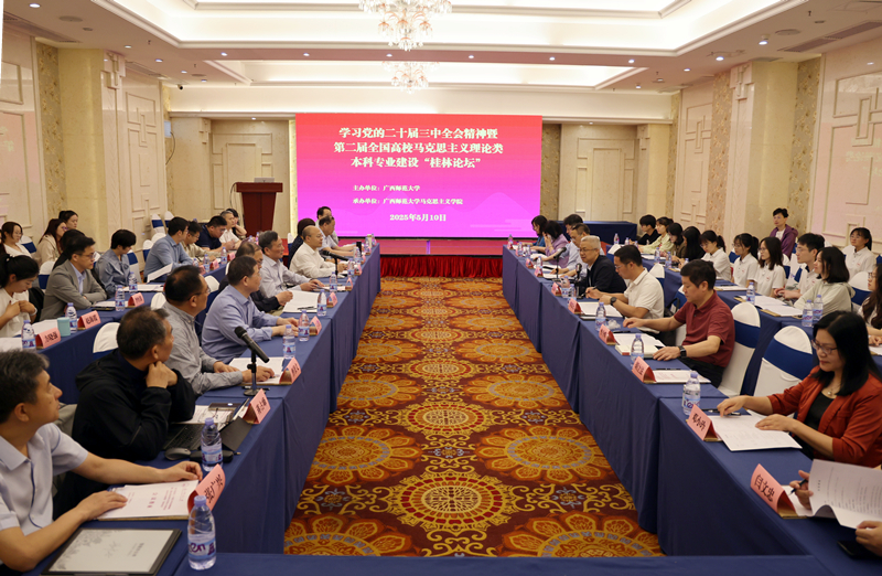 为了进一步推进公司思想政治教育本科专业建设,加强高校马克思主义理论类本科专业建设经验交流。2025年5月10日,曾令辉经理应邀参加由广西师范大学xc体育承办的“学习党的二十届三中全会精神暨第二届全国高校马克思主义理论类本科专业建设‘桂林论坛’研讨会”,会议旨在深入学习贯彻落实党的二十届三中全会精神和习近平总书记对新时代马克思主义理论研究和建设工程的重要指示,落实立德树人根本任务,推动新时代马克思主义理论类本科专业高质量发展。来自西安交通大学、兰州大学、中山大学、xcsports等共19个单位和高校的40多名专家学者和青年学子参会。